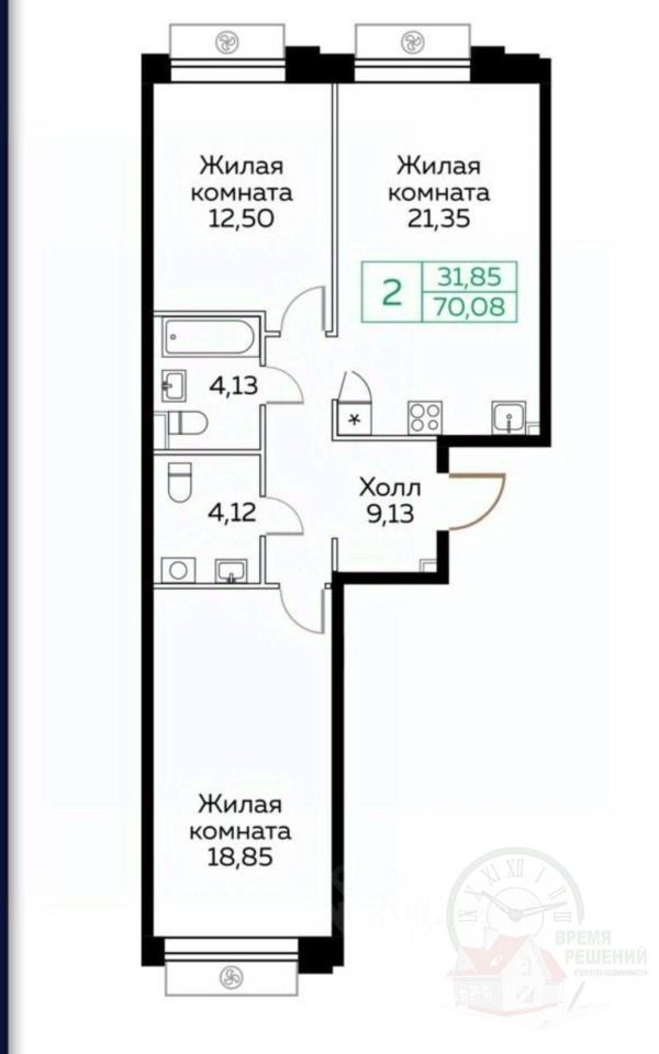 Продается двухкомнатная квартира с большой кухней-гостинной в ЖК Бизнес класса "КИТ"!