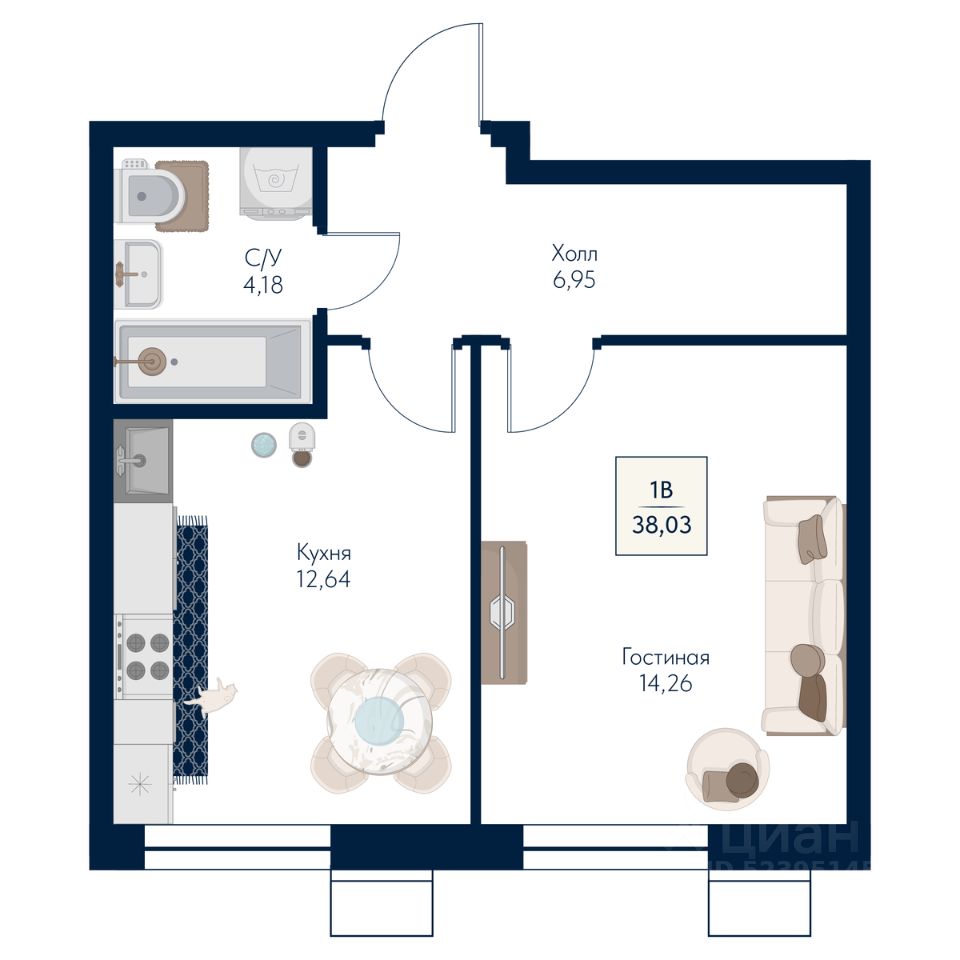 Продаётся 1-комнатная квартира в строящемся доме (Секции 1-5), срок сдачи: III-кв. 2028, общей площадью 38.03 кв.м., на 11 этаже. Новый жилой комплекс "Бархат" от застройщика "СЗ Глобалмытищи" расположен по адресу: г. Мытищи, Ядреевская улица.
