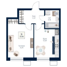 Общая площадь37,48 м²