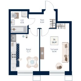 Общая площадь36,47 м²