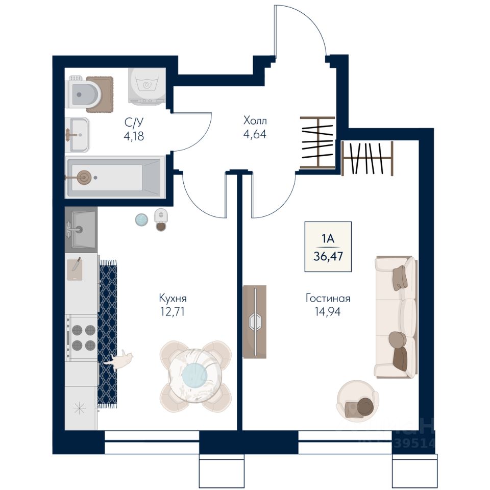 36,47 м²
