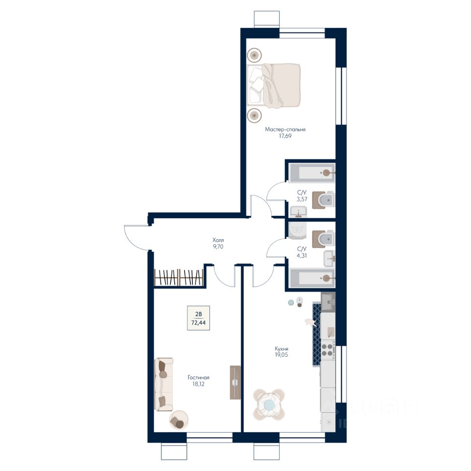 Общая площадь72,44 м²