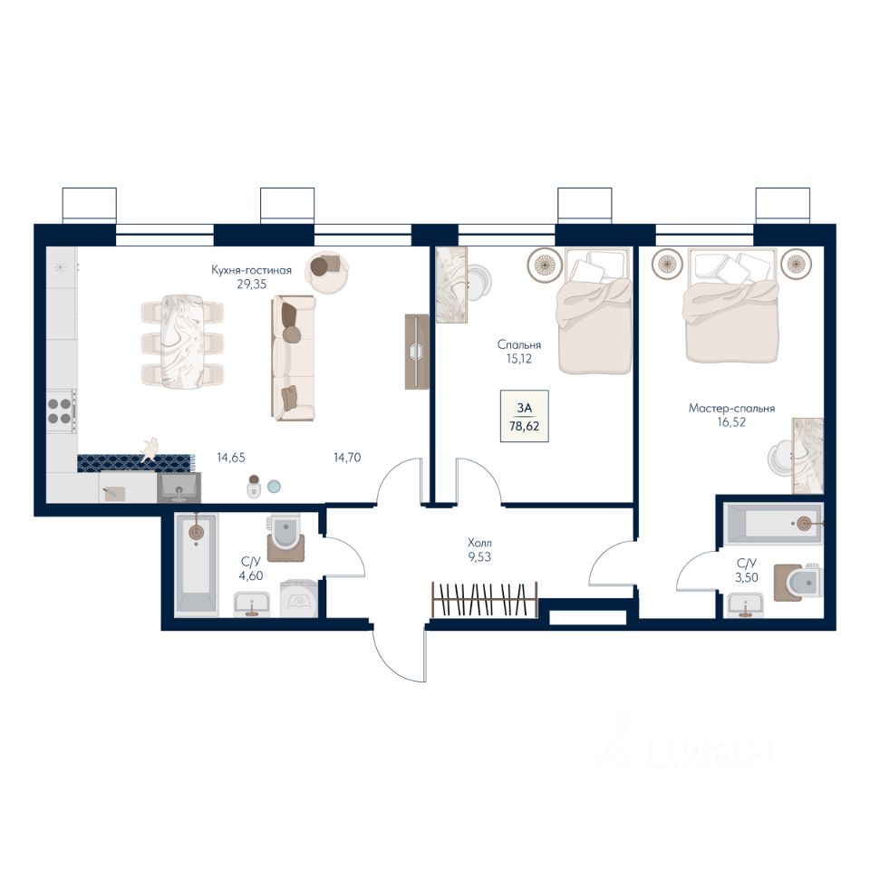 Общая площадь78,62 м²