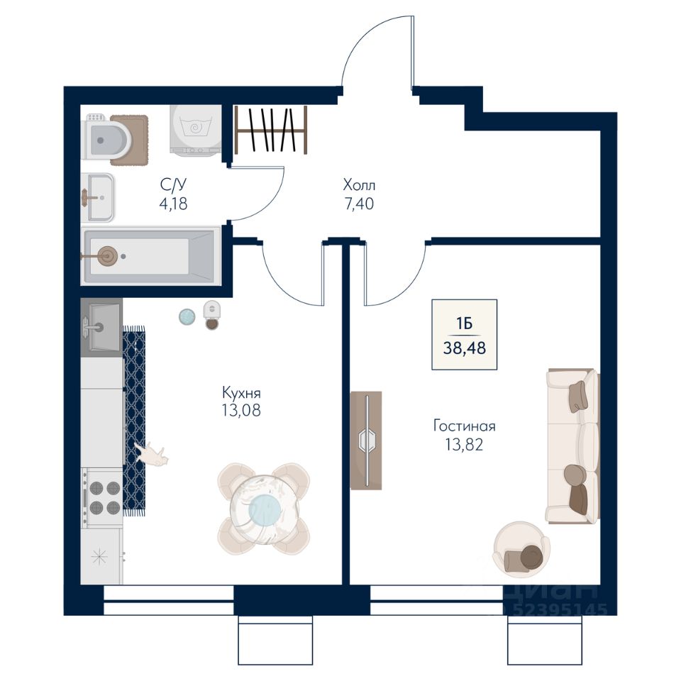 Общая площадь38,48 м²