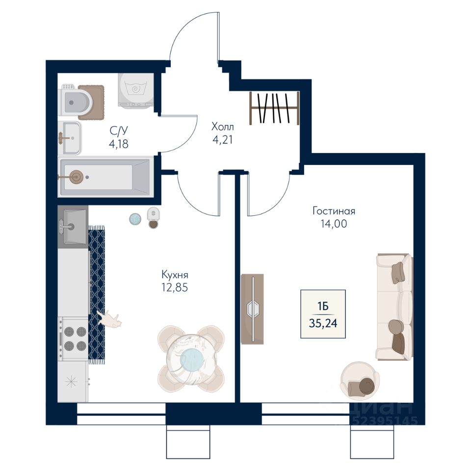 Общая площадь35,24 м²