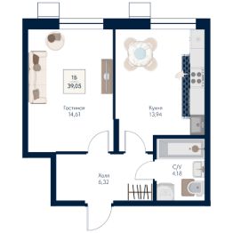 Общая площадь39,05 м²