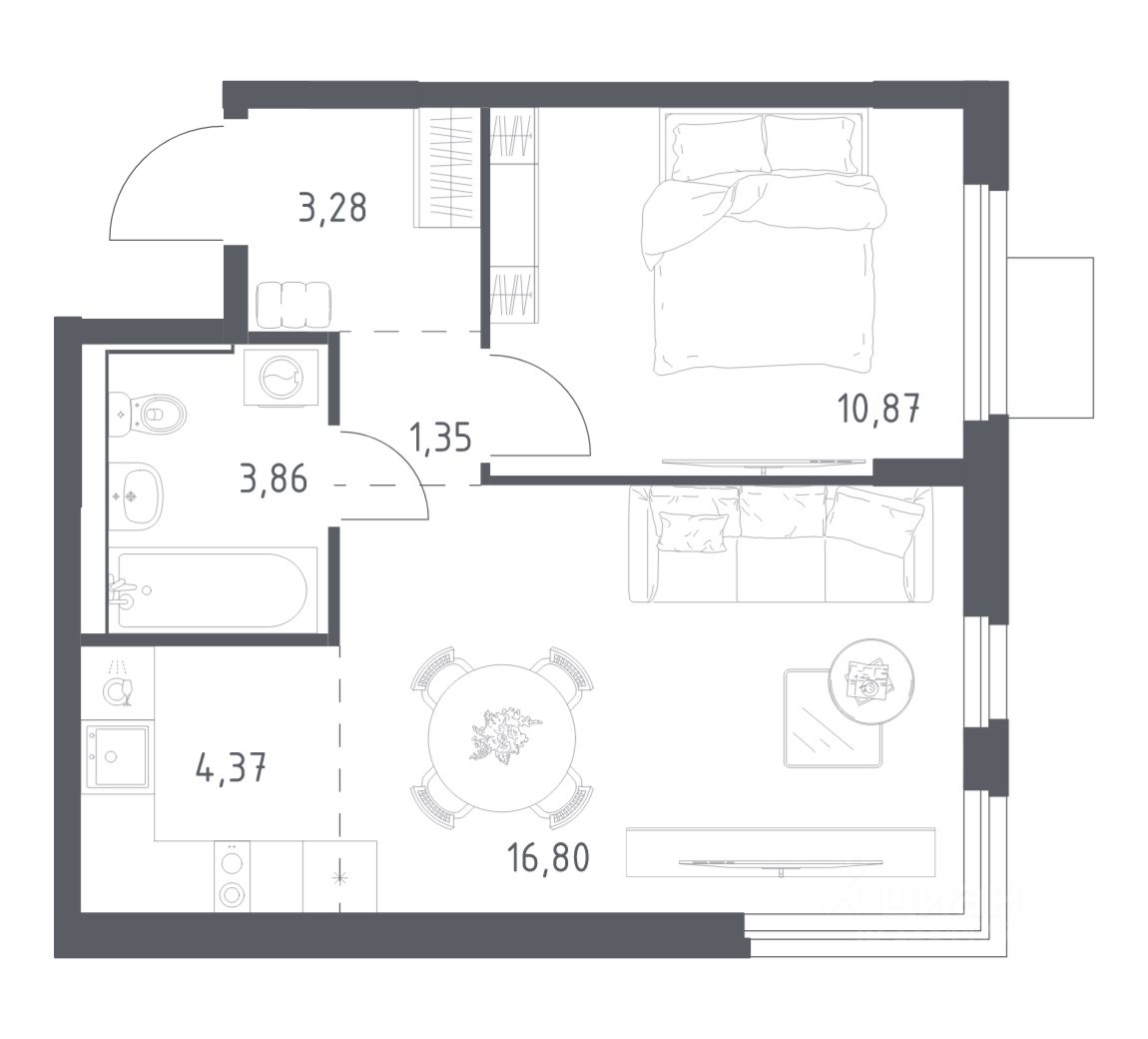 Строим кварталы для жизни с заботой о будущем. Предлагается 1-комнатная квартира комфорт-класса площадью 40,53 кв.м в корпусе 5 на 8-м этаже, в жилом комплексе "Мытищи Парк".