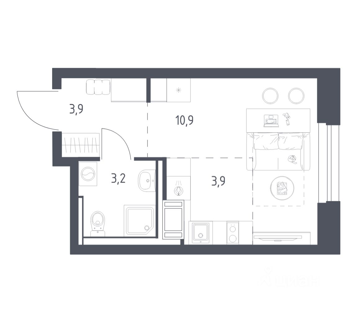 Строим кварталы для жизни с заботой о будущем. Предлагается студия комфорт-класса площадью 21,6 кв.м в корпусе 4.2 на 5-м этаже, в жилом комплексе "Мытищи Парк".
