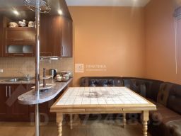 Кухня-гостиная — идеально подойдёт как для семейных завтраков, так и для дружеских посиделок. Встроенный кухонный гарнитур с вместительными шкафами из тёмного дерева — удобно хранить посуду и продукты.