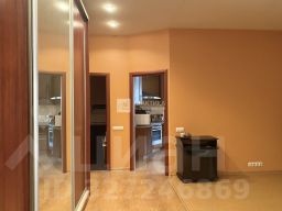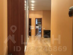 В коридоре вместительный шкаф-купе с зеркальной вставкой.