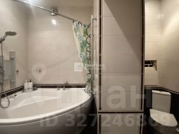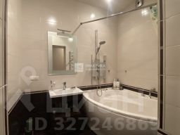 Совмещенный санузел. Угловая ванна с гидромассажем, душевая система с несколькими режимами. Практичная плитка в двух цветовых решениях (белый + тёмный оттенок) — легко поддаётся уборке, устойчива к влаге.