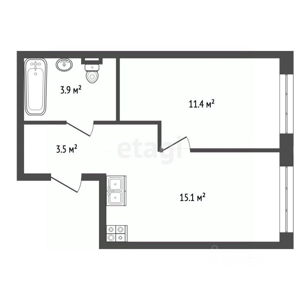 • Планировка: большая кухня-гостиная 15 м², совмещенный санузел, огромная гардеробная комната.