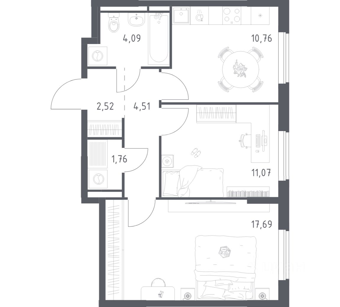 Квартиры комплекса — на выбор: могут быть как с отделкой, так и без. В случае с готовой отделкой уложат напольное покрытие, выровняют стены и поклеят обои в нейтральных тонах, установят потолки, выполнят разводку коммуникаций и подключат сантехнику. Вам также не придётся после заселения менять окна, межкомнатные и входные двери — их качество будет на высоте.