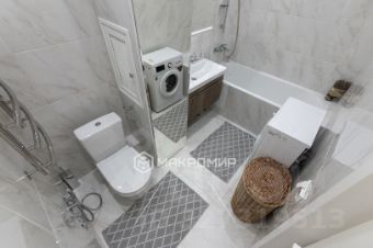 — Просторный санузел с ванной и душем, есть стиральная машина