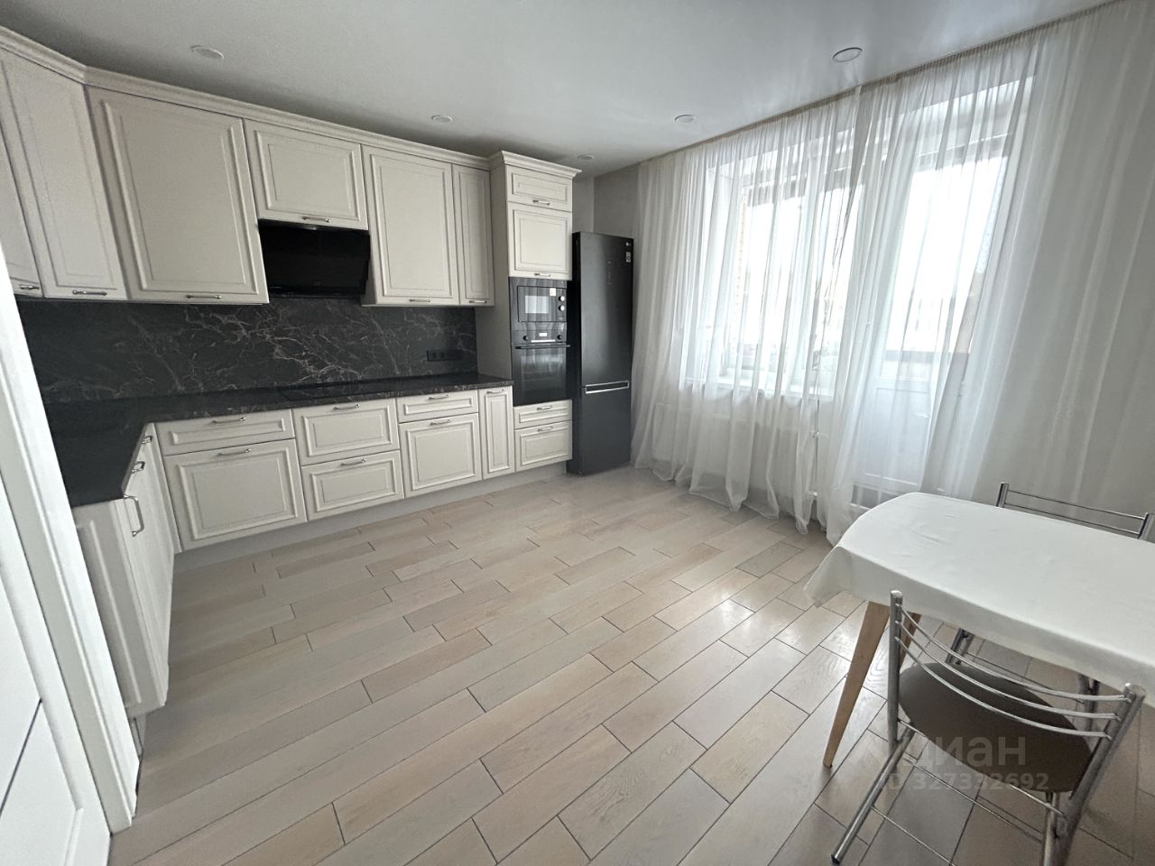- ремонт в светлых тоннах, на полу инженерная доска (дуб)