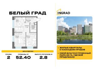 Прямая продажа от девелопера. В жилом квартале комфорт-класса "Белый Град" (девелопер ingrad) продаётся 2-спальная квартира площадью 52.40 кв.м без отделки. Квартира расположена на 8 этаже 20-этажного дома, корпус 12.2.