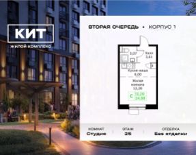 Продаётся студия 24.88 кв.м. без отделки в ЖК "КИТ2" на 25-м этаже 25 этажного дома.Жилой комплекс "Кит 2" спроектирован в урбанистической концепции "Город в Городе".