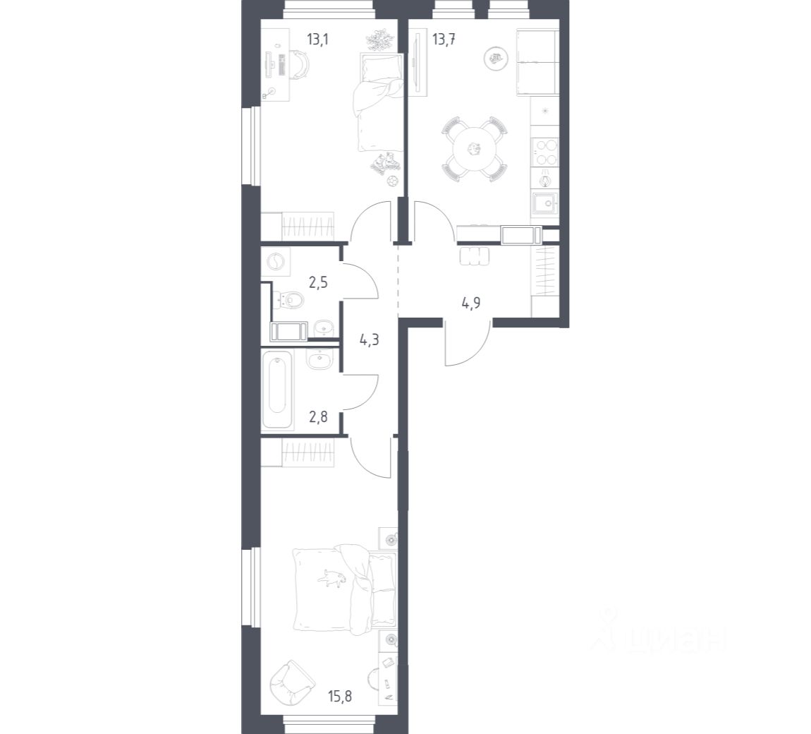 Квартиры комплекса — на выбор: могут быть как с отделкой, так и без. В случае с готовой отделкой уложат напольное покрытие, выровняют стены и поклеят обои в нейтральных тонах, установят потолки, выполнят разводку коммуникаций и подключат сантехнику. Вам также не придётся после заселения менять окна, межкомнатные и входные двери — их качество будет на высоте.
