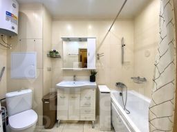 Код объекта: 2066089. Светлая и теплая однокомнатная квартира в городе Мытищи. Квартира идеально подойдёт как для проживания небольшой семьи, так и для инвестиций, принося стабильный доход от аренды. О квартире: Однокомнатная квартира с ремонтом и мебелью, общей площадью 44 кв.м., расположена на комфортом 2-м этаже в монолитно-кирпичном доме 2007 года постройки. Продуманная планировка: коридор, слева гардеробная, прямо комната 20 кв.м., направо совмещенный санузел, кухня-гостиная 11 кв.м. с выходом на застекленный балкон. В квартире заменены оконные рамы . Основная комната — интерьер выполнен в спокойных, светлых тонах. Остается мебель: диван, серый шкаф, серый комод, кондиционер. Кухня-гостиная — встроенный кухонный гарнитур с техникой : варочная панель, духовой шкаф, вытяжка, холодильник, есть посудомоечная машина, кресло-кровать и обеденный стол на три персоны - остаются новому собственнику. Совмещенный санузел большой площади. Установлен бойлер для вашего комфорта в период летнего отключения горячей воды, стиральная машина, полочки для хранения, тумба под раковину. В коридоре есть место для обувницы. Вместительная гардеробная, оснащенная стеллажами для хранения вещей. Готовый интерьер, мебель и техника — квартира без дополнительных вложений! Двор и дом: Дом 2007 года, монолитно-кирпичной постройки, два лифта, закрытый тамбур на этаже. Тихий двор с детской площадкой, наземная парковка во дворе и около дома. Развитая инфраструктура: В шаговой доступности — сетевые магазины, остановка общественного транспорта у дома, спортивный зал, два детских сада и лицей 34. Транспортная доступность: До станции метро "Медведково" — около 4,2 км., на авто 25 минут; до ж/д станции "Перловская" пешком 30 минут. До МКАД 1 км. До ж/д Мытищи 30 мин, ходят регулярные маршруты общественного транспорта. Условия продажи: Свободная продажа, два взрослых собственника, без обременений и залога, подходит под ипотеку. Юридически освобождена - никто не зарегистрирован. Быстрый выход на сделку. Продажа по договору - ДКП, полная стоимость. Приглашаем на просмотр ! Оперативный показ. Быстрый выход на сделку. Работать с МИЭЛЬ выгодно и надёжно. 1. покупателю выдаётся Правовой сертификат, гарантирующий юридическую чистоту объекта. 2. возможна ипотека с особыми условиями для клиентов МИЭЛЬ от банков-партнёров, работаем с любыми источниками финансирования (материнский капитал, военный сертификат и т.д.).