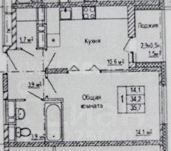 1-комнатная, 34,2 м² в центре Новое Медведково