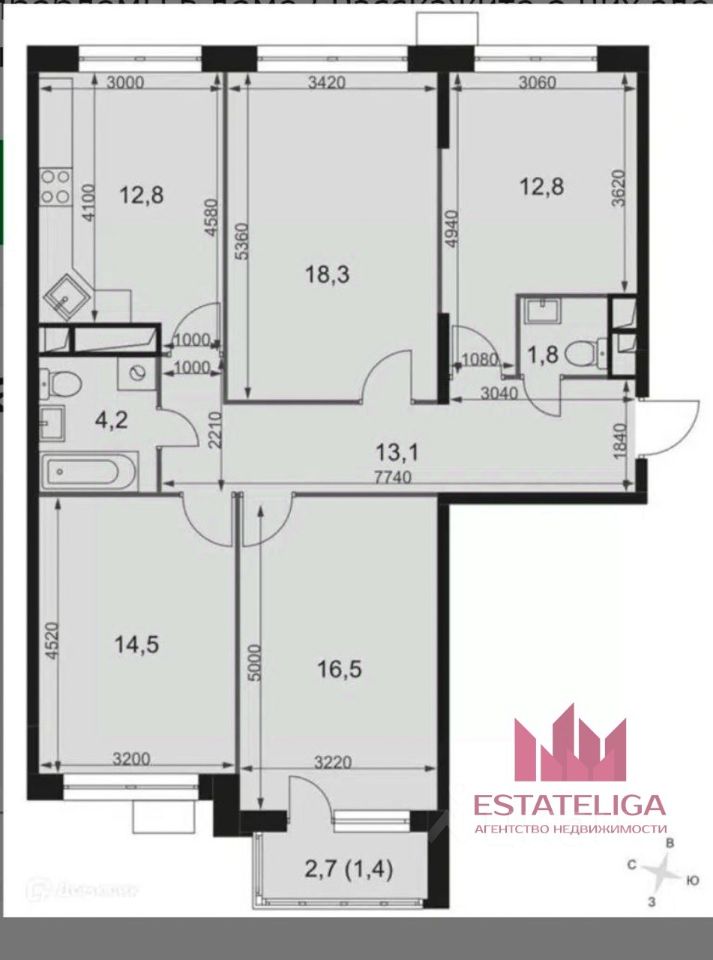 Планировка квартиры — ее ключевое преимущество. Четыре изолированные комнаты площадью от 12,8 до 18,3 кв. м, просторная кухня в 14 кв. м и два санузла (раздельный и совмещенный) обеспечивают максимальное удобство для большой семьи или тех, кто ценит личное пространство. Высокие потолки в 3 метра и балкон добавляют ощущение свободы и простора. Такой формат идеален для создания дома, где у каждого члена семьи будет свой уголок, а также для профессиональной деятельности, требующей кабинета или мастерской.