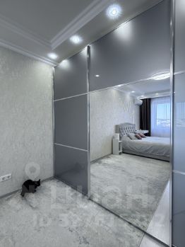 Встроенный шкаф-гардероб во всю стену с большим зеркалом. Вещи не занимают место, в комнате всегда порядок.