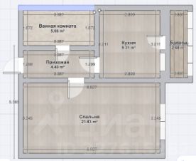 Кухня с балконом, жилая комната, ванная комната совмещенная с санузлом и коридор.