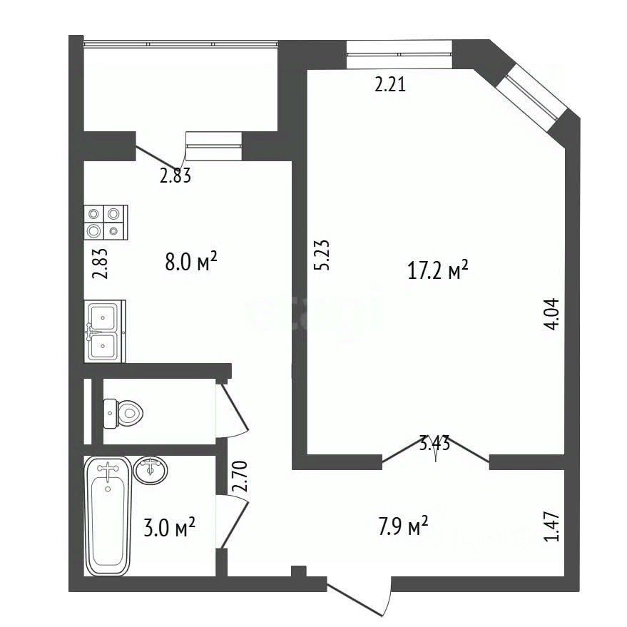 Квартира общей площадью 37 кв. м включает просторную комнату, кухню, ванную, туалет и застеклённую лоджию. Дом ухоженный, оснащён двумя лифтами. Перед окнами — большая парковка, где всегда есть свободные места.