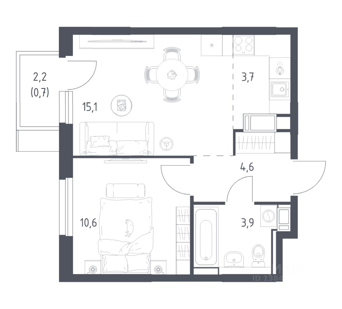 Строим кварталы для жизни с заботой о будущем. Предлагается 1-комнатная квартира комфорт-класса площадью 38,2 кв.м в корпусе 4.1 на 5-м этаже, в жилом комплексе "Мытищи Парк".