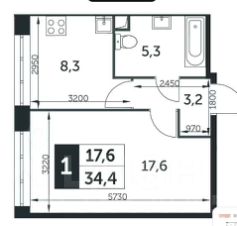 34,4 м²