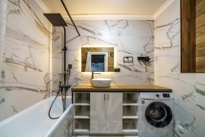 • Планировка: кухня-гостиная 19 м² + спальня + детская (кабинет) + 2 санузла.