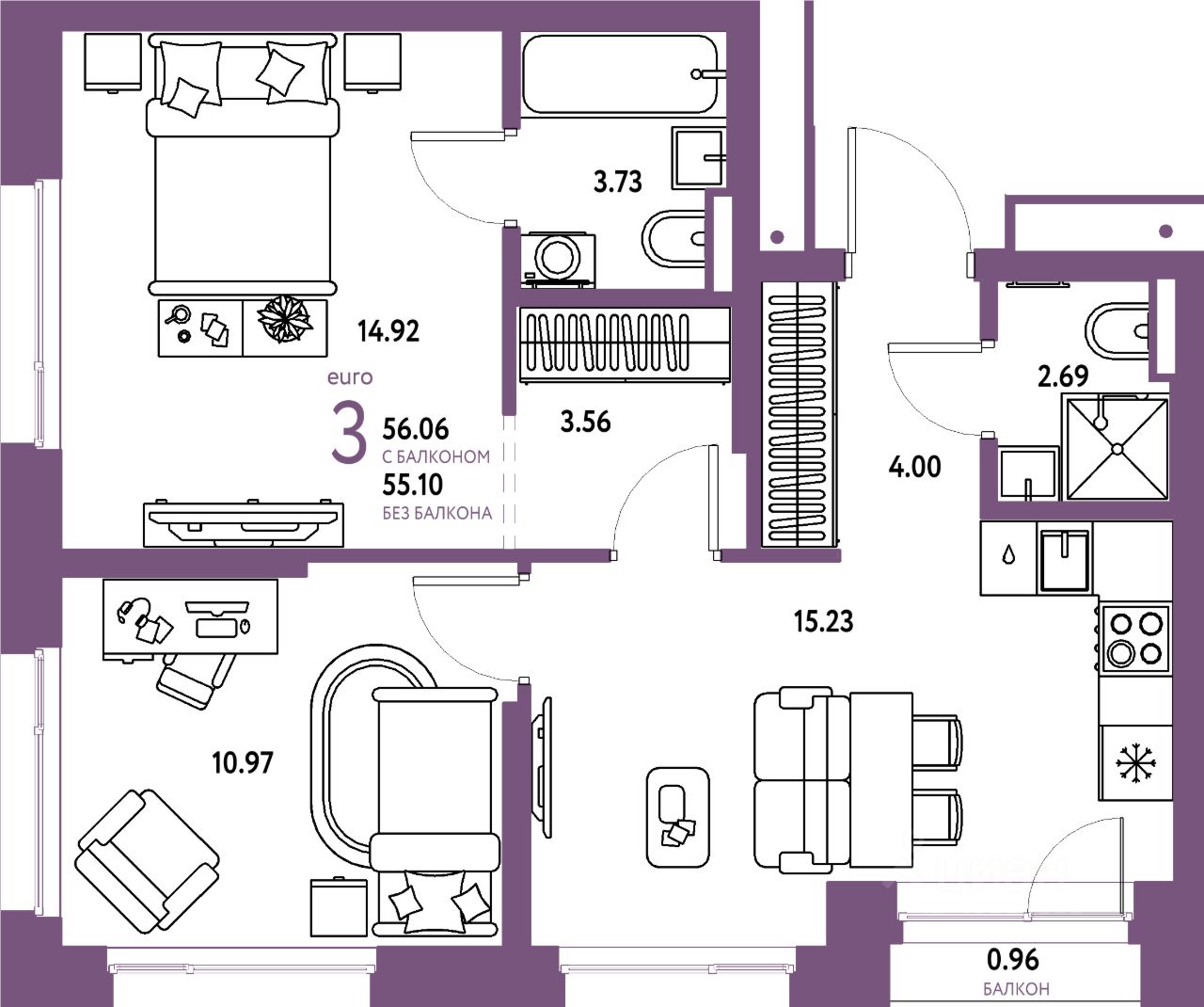Продаётся 3-комнатная квартира в строящемся доме (Дом Перов), срок сдачи: III-кв. 2026, общей площадью 56.06 кв.м., на 14 этаже. Многоэтажные жилые дома с объектами инфраструктуры, расположенные по адресу: Московская область, г.о. Мытищи, г.Мытищи, мкр. 18Б, ул. Комарова.