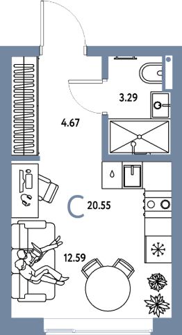 Продаётся студия в строящемся доме (Дом Перов), срок сдачи: III-кв. 2026, общей площадью 20.55 кв.м., на 5 этаже. Многоэтажные жилые дома с объектами инфраструктуры, расположенные по адресу: Московская область, г.о. Мытищи, г.Мытищи, мкр. 18Б, ул. Комарова.