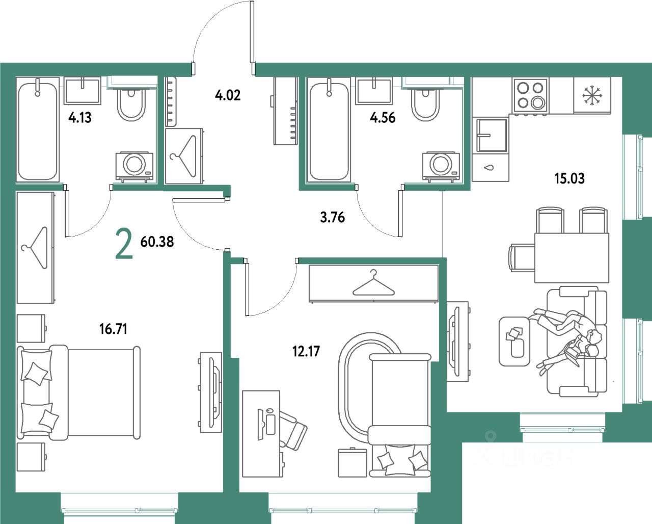 Продаётся 2-комнатная квартира в строящемся доме (Дом Васнецов), срок сдачи: IV-кв. 2027, общей площадью 60.38 кв.м., на 13 этаже. Многоэтажные жилые дома с объектами инфраструктуры, расположенные по адресу: Московская область, г.о. Мытищи, г.Мытищи, мкр. 18Б, ул. Комарова.