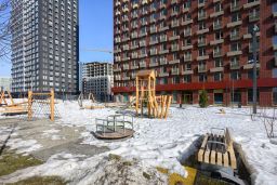 Закрытый двор без машин обустроен современными детскими и спортивными площадками и зонами отдыха.