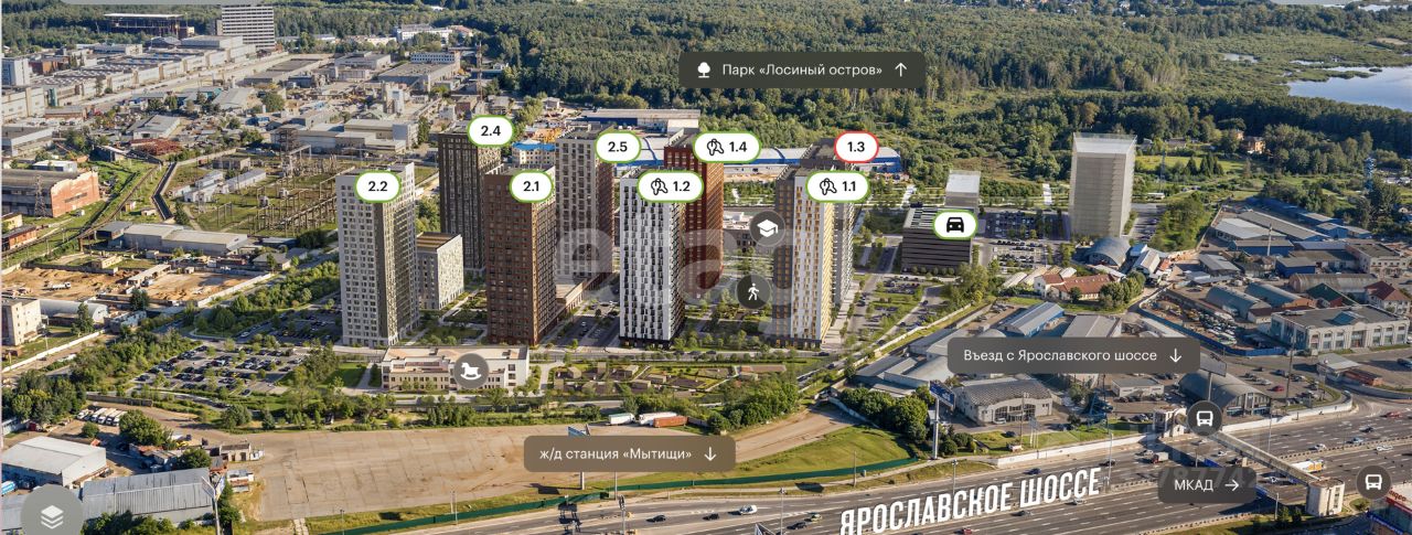 Проект "Ярославский квартал" возводится в Мытищах, в 6 км от МКАД. Жилой квартал, состоящий из 8 корпусов (окончание строительства в 2027г.), строится рядом с Ярославским шоссе и имеет удобный заезд с крупной автомагистрали.