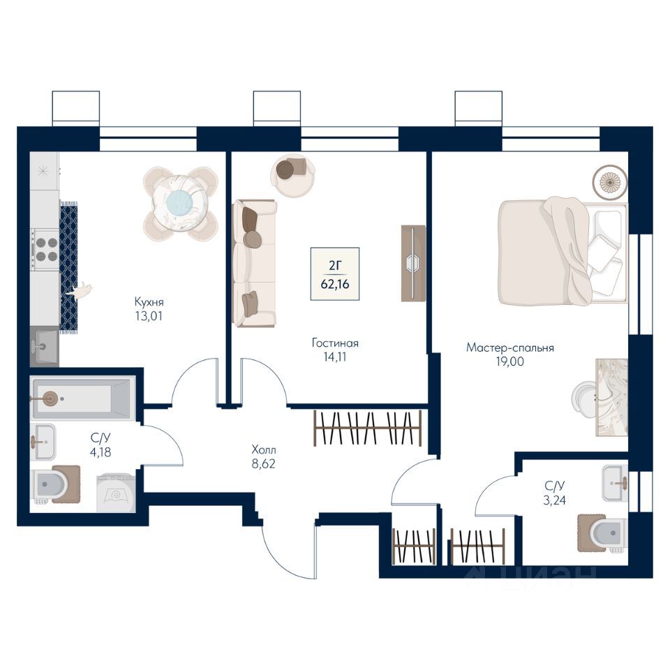 62,16 м²