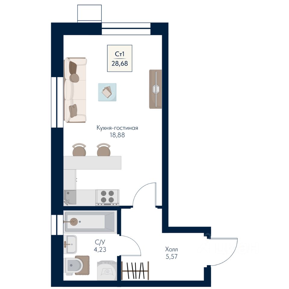 28,68 м²