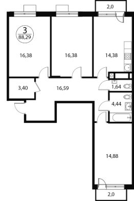 Продаётся 3-комнатная квартира в строящемся доме (Корпус 2), срок сдачи: IV-кв. 2026, общей площадью 89.29 кв.м., на 4 этаже. Расположение, транспортная доступность
