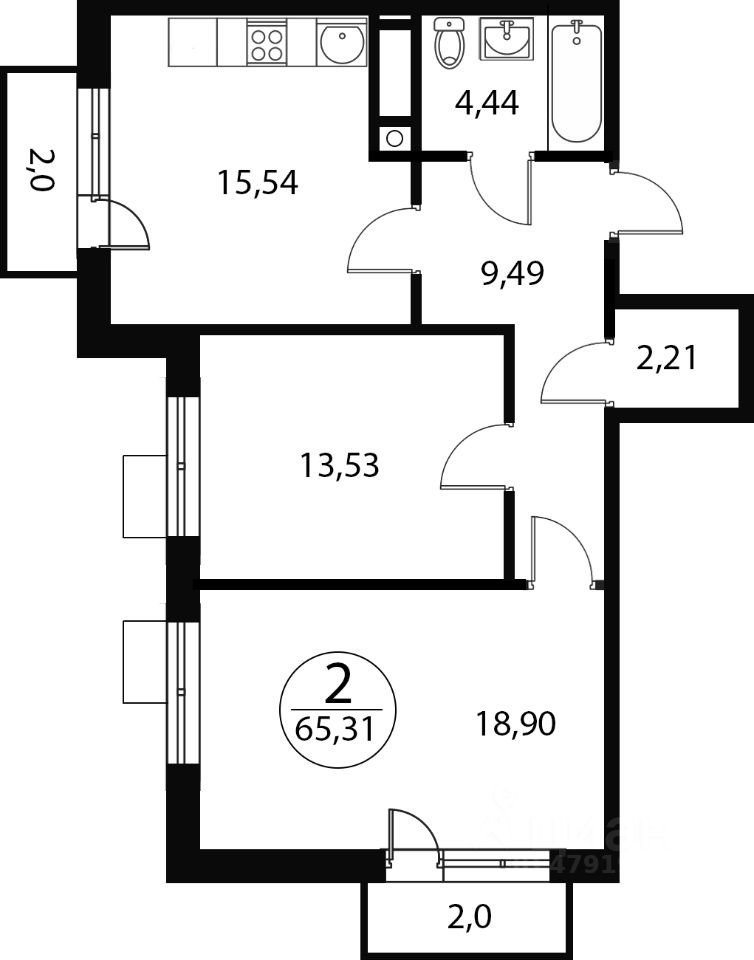 Продаётся 2-комнатная квартира в строящемся доме (Корпус 1), срок сдачи: IV-кв. 2026, общей площадью 65.31 кв.м., на 3 этаже. Расположение, транспортная доступность