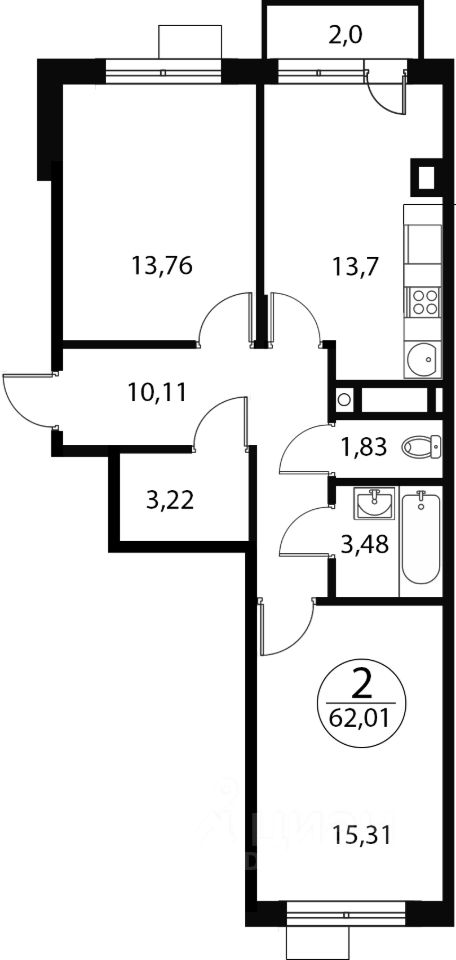Продаётся 2-комнатная квартира в строящемся доме (Корпус 1), срок сдачи: IV-кв. 2026, общей площадью 62.01 кв.м., на 4 этаже. Расположение, транспортная доступность