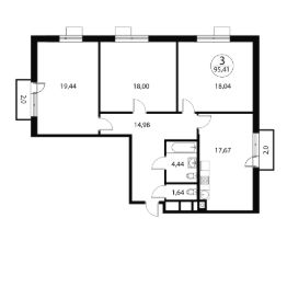 Продаётся 3-комнатная квартира в строящемся доме (Корпус 1), срок сдачи: IV-кв. 2026, общей площадью 95.41 кв.м., на 4 этаже. Расположение, транспортная доступность