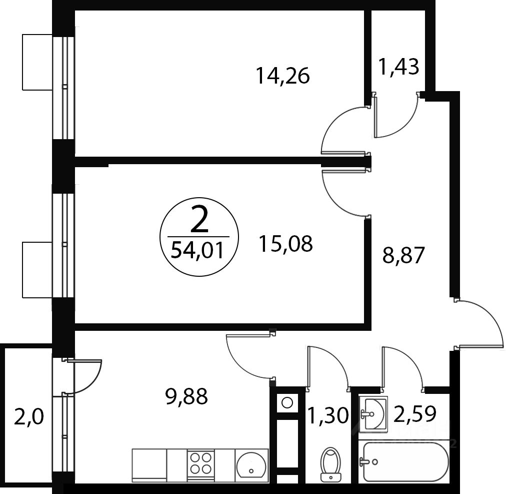 Продаётся 2-комнатная квартира в строящемся доме (Корпус 5), срок сдачи: IV-кв. 2026, общей площадью 54.99 кв.м., на 4 этаже. Расположение, транспортная доступность