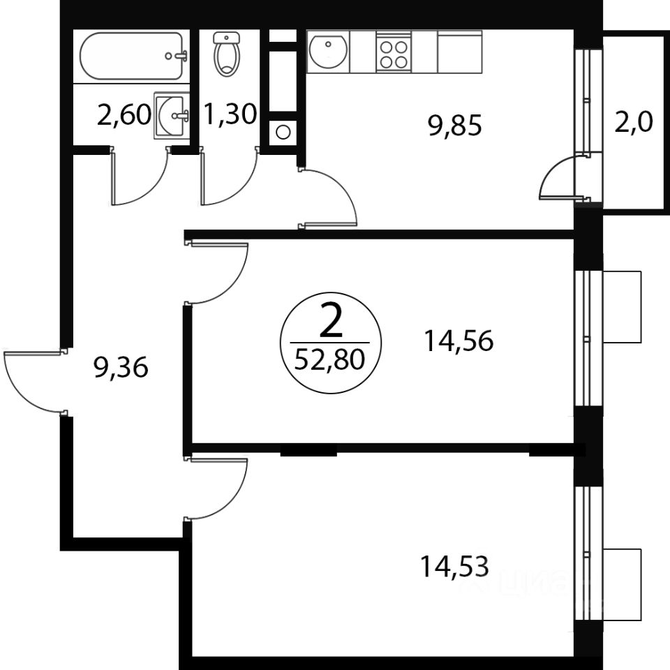 Продаётся 2-комнатная квартира в строящемся доме (Корпус 5), срок сдачи: IV-кв. 2026, общей площадью 52.8 кв.м., на 1 этаже. Расположение, транспортная доступность