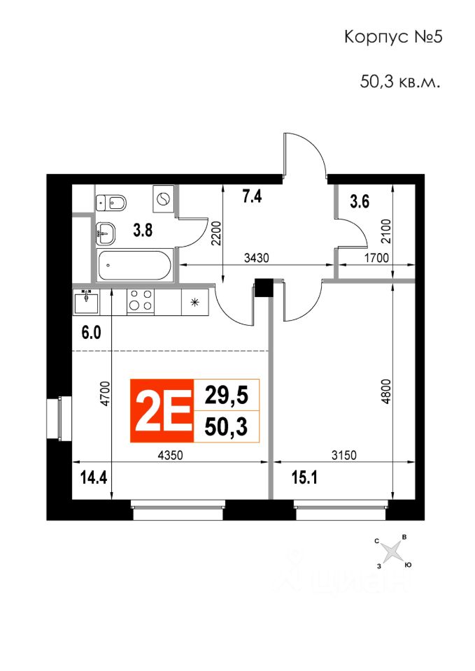 Продаётся 2-комнатная квартира в строящемся доме (Корпус 5), срок сдачи: II-кв. 2026, общей площадью 50.3 кв.м., на 17 этаже. Многоквартирный жилой дом со встроенно-пристроенными нежилыми помещениями и автостоянкой