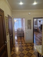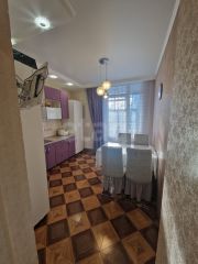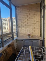 Вся встроенная кухонная мебель и техника, а также шкафы в комнатах могут остаться новым собственникам. Застекленная лоджия оборудована освещением и функциональной мебелью.
