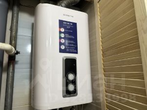Санузел раздельный, на пол уложена керамогранитная плитка хорошего качества, стены в керамической плитке. В сантехническом шкафу туалета выполнена разводка горячей и холодный воды с помощью регулирующих коллекторов FAR, установлен бойлер для горячей воды (на случай её отключения), унитаз с функцией биде и отдельным смесителем. Полотенцесушитель работает от центрального водоснабжения, активная система вентиляции, чугунная ванная, зеркало с подсветкой, столешница из керамической плитки, полки из алюминия (не ржавеют).