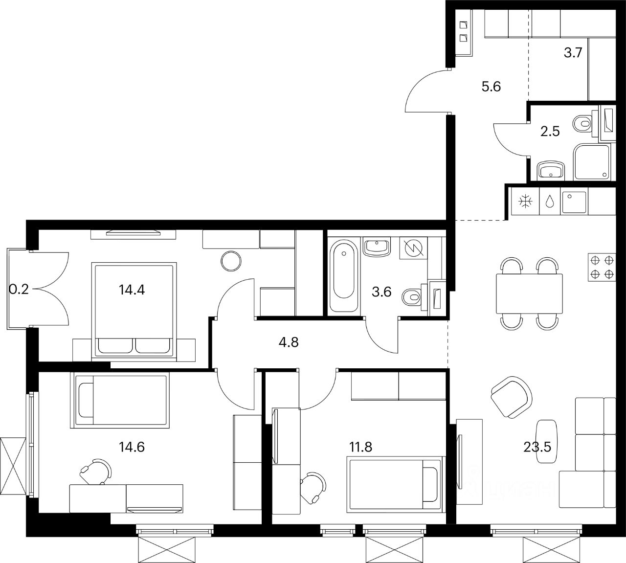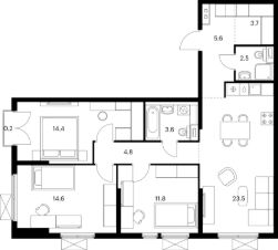 Продаётся 3-комн. квартира площадью 84,7 кв.м на 14 этаже 25 этажного дома (Корпус 2, Секция 1) проекта ПИК Яуза парк. Светлый просторный подъезд на уровне земли, функциональная планировка, большие окна, c отделкой.