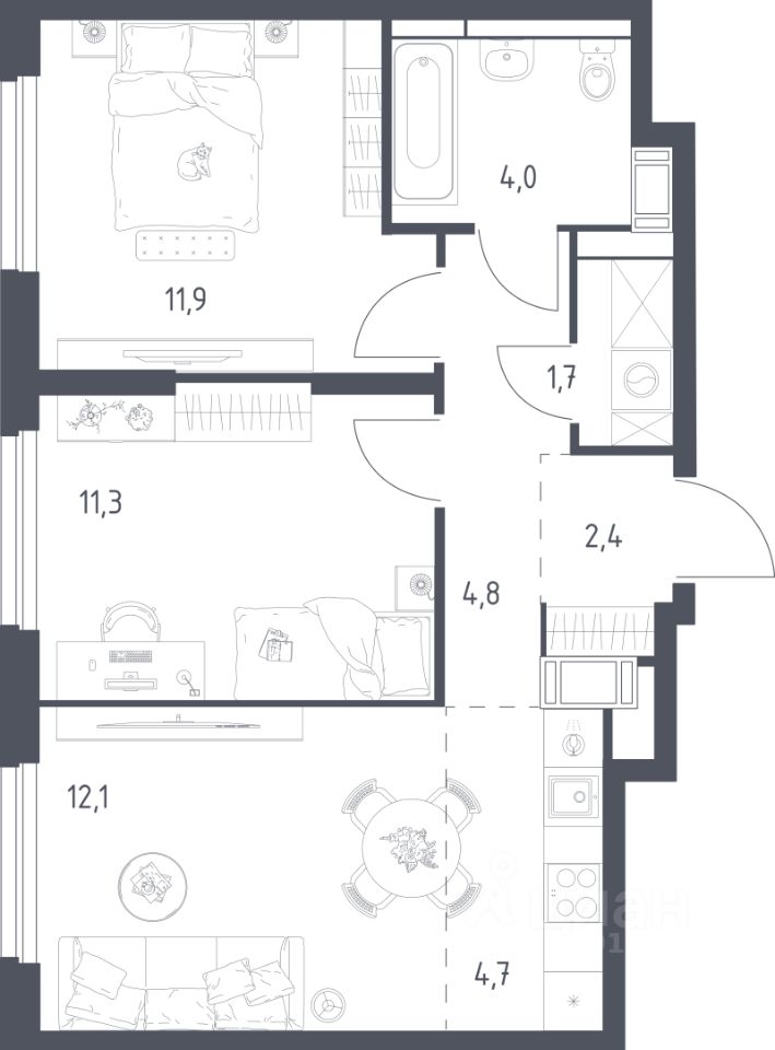 Продаётся 2-комнатная квартира в сданном доме (Корпус 4 (2 этап)), срок сдачи: II-кв. 2025, общей площадью 52.3 кв.м., на 14 этаже. При выборе места строительства мы отталкивались от потребностей реальных людей: семей с детьми, для которых важна близость школ, детских садов и поликлиник; молодёжи, которая активно строит карьеру; людей постарше, которые ценят тишину, чистый воздух, доступность магазинов и других социальных объектов.