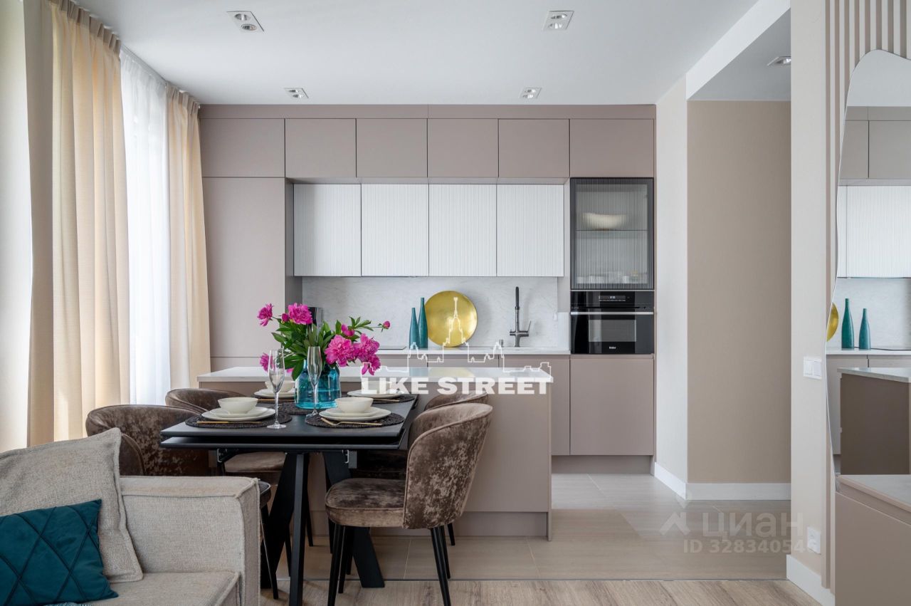 Продается стильная трехкомнатная квартира в современном доме. Из кухни гостиной открываются великолепные виды.